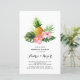 Convite para chás de casamento tropicais divertidos e festivos, com ilustrações aquáticas de hibisco, abacaxi e folhagem cor-de-rosa, que combinem um padrão tropical para o dorso. Este convite de verão é totalmente editável para qualquer casamento temático tropical e havaiano. Personalize adicionando seus detalhes.