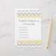 Chá de fraldas personalizado adivinhando artigos de jogos em um padrão de riscas de cores amarelo vivo e amarelo-chic e cinza claro. Entre em contato conosco para obter uma cor personalizada.