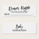 Adoráveis bilhetes de rifle preto e branco de fralda em um moderno roteiro de pincel em branco. Personalize-os acrescentando o nome do bebê. Adicione-os aos seus convites, preço barato pela quantidade 100, tamanho perfeito 3"x1". Excelente para qualquer bebê ou garota, tema de festa de chá de fraldas neutro em sexo. Corresponde a qualquer tema de cor ou matiz de esquema.