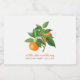 Um design simples para um chá de fraldas com tema laranja/bonito. Apenas um galho cítrico com folhas verdes e duas laranjas. Com o título do tema, "um pouco de graça está a caminho", sob o galho, numa escrita de rico laranja, nome, ocasião e data abaixo, em pequenos bonés pretos.