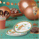 Placas de papel de chá de fraldas rinoceronado para ciclismo de animais, de cor branca e branca, de cor aquosa unisexo. Adicione seu próprio nome de honra a um fofo buffet de chá de fraldas personalizado. Rinocerontes castanhos de cor aquosa macia a pedalar um monociclo em tons de outono/outono de marrom, verde, laranja, roxo e aqua. Personalize com a sua mãe para ser o nome e o texto. Estilos brancos de elefante circo, estilo aquoso, pintura de aquarela e design por Sarah Trett. www.sarahtrett.com para www.mylittleeden.com