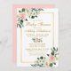 Placa de Convite para Chá de fraldas Floral Dourada e Branco, cor-de-rosa-d'água - Parte traseira rosa
