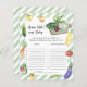 "O bebê crescido localmente está a caminho". Celebrar com esta festa de chá de fraldas temático de legumes de aquarela! pepino aquoso, cebola, beringela, abobrinha, tomate amarelo e vermelho, rabanetes, cenouras, pimenta quente, pimenta amarela doce, ervilhas e repolho, brócolis e beterraba num conselho de corte. Colheita orgânica por aquarelas.