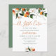 Convite para chá de fraldas com laranjas de citros de aquarela. As cores e o texto podem ser personalizados.