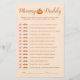 Celebre seu chá de fraldas de outono com este divertido jogo "Adivinha quem Mamãe ou Pai" com um charmoso design de abóbora. Perfeito para um tema de chá de fraldas de abóbora, este cartão adiciona charme lúdico aos temas de chá de fraldas de setembro, ideias de chá de fraldas de outubro ou ideias de chá de fraldas de novembro. Quer você esteja planejando uma reunião aconchegante ou procurando por ideias de chá de fraldas de outono, isto ajustado maravilhosamente com temas de chá de fraldas de outono e nossas pequenas ideias de chás de fraldas de abóbora. Um dever para qualquer tema de chá de fraldas de abóbora!