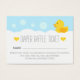Você está planejando um banho de bolha ou um chá de fraldas temático de pato? O Bilhete de Fralda de Borracha Amarela, Raffle, projetado pela Enchantfancy Design, é uma escolha adorável para chás de fraldas neutros em relação ao gênero. Apresenta um doce patinho amarelo flutuando em bolhas de banho. Esta placa de fralda ajudará a adicionar esse toque especial ao seu chá de fraldas. Não se esqueça de juntar o tema da festa de pato com a coordenação de produtos projetados pela Enchantfancy Design Company.