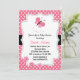 Chá de fraldas convite com design de borboleta e fundo de polkadot.