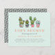 Convites de chá de bebê bonitos, com quatro cactos de aquarela pastel no topo, com tipografia química. Perfeito para chás de fraldas de temas suculentos. Como parte da seleção do orçamento aqui no Zazzle, estes convites não vêm com envelopes nem ajustado de forma suave em um envelope de tamanho padrão. O tamanho mais próximo é A6, mas haverá um intervalo de aproximadamente meio polegada. Se não se importa com a falta de humor, você poderia usar envelopes A6 tão disponíveis. Caso contrário, esse design pode ser transferido para um formato padrão 5x7 (que vem com envelopes) usando a ferramenta de transferência design. Como guia geral, a partir do momento do escrevendo, 100 convites orçamentários (incluindo um desconto por volume) custariam cerca de US$ 39, enquanto 100 convites padrão 5x7, incluindo envelopes, custariam aproximadamente US$ 135. Sua quilometragem pode variar dependendo dos códigos de promocionais disponíveis do Zazzle, das vendas em todo o site ou das mudanças nos preços.