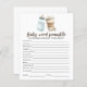 Xícara de papel aquoso de café e garrafa de leite de bebê. Respostas: CRAVINGS, CRYING, PACIFIER, FRASCO, LUZ NOTURNA, LULLABY, STROLLER, EPIDURAL, BURP, ALTA CADEIRA, SACO DE FRALDA, SWADDLE