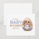 Cartões de agradecimentos plano de coelho de pelúcia bonito e chá de fraldas em cores pastel.