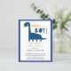 Chá de fraldas de dinossauro bonito. Roar, é um menino! Convite para chá de fraldas do tema dinossauro azul e amarelo, bonito. Ilustração digital de Kristine Lee. Para obter mais informações, visite www.kristineleedesigns.com