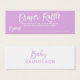 Incrível e moderno bilhete de rifle de lavanda, roxo e branco, em um moderno roteiro de pincel em branco. Personalize-os, acrescentando o nome do bebê. Adicione-os aos seus convites, preço barato pela quantidade 100, tamanho perfeito 3"x1". Excelente para qualquer bebê ou garota, tema de festa de chá de fraldas neutro em sexo. Corresponde a qualquer matiz do esquema de cor violeta violeta lavanda.