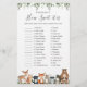 Animais da floresta temem gravidez de chá de fraldas quão doce é o cartão de caça apresenta uma ilustração de animais da floresta de cor d'água e verde-d'água eucalipto garland e uma elegante letra de estilo manuscrito.