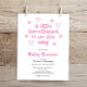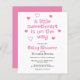 Chá de fraldas Rosa Menina Convite com frase fofa e comum 'um pequeno amor está a caminho'.