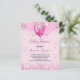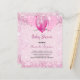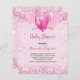 Para um chá de fraldas, comemorando uma menina. Um fundo rosa rosado e giro. Decorado com pó de brilho falso. Personalize e adicione o nome da mãe e os detalhes da festa. O nome e o texto: Chá de fraldas são escritos com um script de estilo com letra manual. Letras pretas e cor-de-rosa.