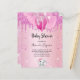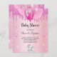 Para um chá de fraldas, comemorando uma menina. Um fundo metálico rosado pincelado e falsa. Decorado com brilho falso, balões e uma bebê elefante. Personalize e adicione o nome da futura mãe e os detalhes da festa. O nome e o texto: Chá de fraldas são escritos com um script de estilo manuscrito