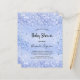 Para um chá de fraldas, comemorando um menino. Um fundo metálico azul-claro e falsa. Decorado com falso brilho. Modelos para o nome da mãe e detalhes da festa. O nome e o texto: Chá de fraldas são escritos com um script de estilo manuscrito