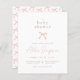 Celebre o seu pacote de alegria que se aproxima com este convite orçamental para o chá de fraldas tema do arco, bonito e rosa. Apresentando uma elegante tipografia serif minúscula, uma letra de escrita rosa pincelada e um arco de aquarela. Design simples e minimalista, ideal para chás de fraldas com tema feminino, este convite dá o tom para uma celebração memorável. Personalize os detalhes usando a intuitiva Ferramenta Design da Zazzle e envie aos seus convidados um convite na moda e animador que eles adorarão! Como parte da seleção do orçamento do Zazzle, esta folha não vem em tamanhos padrão de cartão. Para colocar este design em uma placa padrão, você pode encontrá-lo na coleção ou usar o Zazzle Make Machine para transferi-lo para o seu produto preferido. Veja a coleção ligada nesta página ou visite a nossa loja para mais designs!