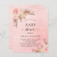 Para um chá de fraldas moderno estilo boho. Um fundo cor-de-água, cor-de-rosa esbranquiçado gradiente, com faíscas douradas. Decorados com ouro rosa e flores, rosas e erva-pampas cor-de-rosa. Personalize e adicione um nome e detalhes da parte.