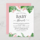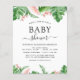 Palmas Tropicais Orçamentárias Flores Florais Watercolor Madre para Ser Bebê Convites - inclui belíssima e elegante tipografia com modernas flores rosa-pinceladas botânicas e verde tropical havaiano para a celebração especial da Mãe a Ser.