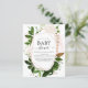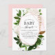 Greenery Botanical Watercolor e Rosa Dourado - Blush Pink Geométrico Primavera Baby Shower Invices em fundo branco - inclui uma bela e elegante tipografia com folhas botânicas modernas e verde para a celebração da Mãe a Ser especial.