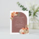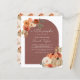Este pequeno abóbora cai no chá de fraldas floral é perfeito para um chá de fraldas elegante. O design apresenta belas abóboras aquáticas em branco, terracota e sábio com flores boho em terracota e marfim com verde. Uma letra elegante é o toque perfeito para terminar. Personalize com todos os detalhes do seu chá de fraldas.
