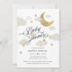 Este belo convite para chás de fraldas é doce e chique e perfeito para um tema de lua e estrelas. Apresentando minha ilustração feita à mão de nuvens, estrelas e lua com folha de ouro falsa e acentuada por caligrafia elegante. O verso apresenta uma nuvem e uma ilustração de estrelas correspondentes com espaço para você escrever informações adicionais. Certifique-se de ver o resto desta coleção exclusiva para ver mais itens para o seu dia especial!