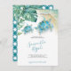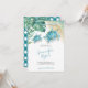 Você está planejando um chá de fraldas e se perguntando onde comprar convites? Este simples convite para chás de fraldas de menino apresenta o nome da mãe para ser definido em uma tipografia moderna de script manuscrito com detalhes de evento em uma fonte de serifa clássica. Uma barqueira da minha tartaruga marinha original e folhas de palmeira monstera em tons de blues, verdes e turquesa adornam este convite tropical. O cartão se reverte para um padrão de gingham azul-turquesa complementar. Uma opção botânica, mas elegante, para os lúaus casuais de verão, praia tropical e chás de fraldas de temas costeiros. Para ver mais convites para o chá de bebê do oceano e toda a suíte de papelaria visite www.zazzle.com/dotellabelle