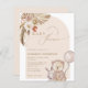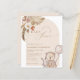 Chá de fraldas moderno da Boêmia com um urso segurando esferas e aquarelas de pampas