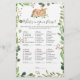 O chá de fraldas do tema veado que está no seu cartão de jogo de bolsa apresenta uma ilustração de veados com aquarela e verde-aquarela eucalipto garland e uma elegante fonte de estilo manuscrito.