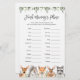Animais da floresta com o tema de final de chá de fraldas, o cartão de jogo da mamãe apresenta uma ilustração de berçário de aquarela e verde-aquarela eucalyptus garland e uma elegante fonte de estilo manuscrito.