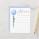 Capture a sabedoria e os desejos de seus entes queridos com nosso "Cartão de Chá Blue Balloon Baby Boy", projetado para complementar o charme do convite para o chá de fraldas Oh Boy. O design de balões azul-brancos acrescenta um toque delicioso a essa tradição sincera, encorajando os convidados a compartilhar seus conselhos e pensamentos calorosos para os futuros pais. Crie uma manutenção cheia de amor e orientação para a nova chegada. Torne o seu chá de fraldas realmente especial com o nosso Cartão de Aconselhamento. Peça a sua hoje e comece a recolher a sabedoria e a alegria dos seus convidados.