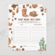 Encoste-se! Este design de aquarela. Este design apresenta cores neutras modernas em uma aplicação de aquarela. Design em impressão de vaca, chapéu de cowboy, cacto do deserto, botas de cowboy. "Um pequeno vaqueiro está a caminho"