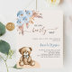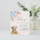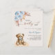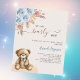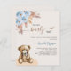 Para um chá de fraldas moderno estilo boho. Um fundo bege. Decorado com rosas azuis empoeirados, grama de pampas e ursinho. Personalize e adicione um nome e detalhes da parte. 1 folha = 1 convite impresso de borda a borda.