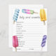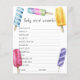 Chá de fraldas temático do picolé de aquarelas. Respostas: CRAVINGS, CRYING, PACIFIER, FRASCO, LUZ NOTURNA, LULLABY, STROLLER, EPIDURAL, BURP, ALTA CADEIRA, SACO DE FRALDA, SWADDLE