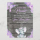 Chá de fraldas de elefante/amendoim, muito fofo, com rosas roxos, flores e fundo de madeira. Todos os campos são editáveis. Adequado para aniversário ou Chás de fraldas, chá de Fralda, gole e veja.