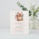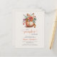 Este belo convite para o chá de fraldas apresenta uma abóbora aquarela que flui com flores e folhagem em queda acima das palavras "está a caminho uma abóbora pequena", com a palavra "abóbora" em escrita laranja decorada com curículos na imitação de videiras de abóbora. Personalize o texto com o nome da futura mãe no roteiro laranja e os detalhes na fonte serif de cinzas de carvão em um fundo bege. Ideal para um chá de fraldas de queda neutro em termos de gênero.