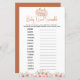 Entretenha seus hóspedes com o nosso Jogo Floral de Chá de fraldas da Pumpkin Doce, Jogo da Palavra, apresentando um belo design de aquarela de florais cor rosa e abóboras com sotaques confortáveis inspirados no outono. Esta divertida e envolvente disputa de palavras é a perfeita quebra-gelos para o seu chá de fraldas de outono, oferecendo aos hóspedes uma maneira deliciosa de testar suas habilidades de palavra enquanto celebra seu dia especial. As flores de pastel macio e design de abóbora acrescentam um toque sazonal charmoso ao seu evento, fazer-o na moda e entretenimento. Parte da Coleção de Chás de fraldas Sweet Pumpkin, este jogo de palavras scramble coordena-se perfeitamente com convites correspondentes, décor, etiquetas favoritas, cartas de agradecimento e muito mais. Explore a coleção de cheios para criar uma celebração maravilhosamente coesa e inesquecível!