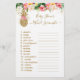 Estes elegantes Cartões de Jogo de Palavras de Bebê são uma forma excelente de se divertir com seu Chá de fraldas e é garantido que sejam um grande sucesso! Simplesmente passá-los durante o Chá de fraldas onde os convidados se divertirão desembaraçando as 15 palavras relacionadas ao bebê! A primeira pessoa com as respostas corretas ganha! A chave de resposta está incluída no verso. O design apresenta flores tropicais de cor-de-água de verão com falso confetti dourado e abacaxi dourado falso. Coordenar a caligrafia dourada elogia o adorável design floral.
