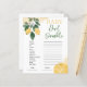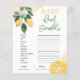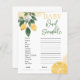 O Chá de fraldas Lemon Word Scramble Game dava um toque à sua chá de fraldas com o nosso jogo de Chá de fraldas Lemon Word Scramble, uma atividade divertida e envolvente que irá deleitar seus convidados! Nesse animado jogo, os convidados desembarcarão uma lista de palavras relacionadas a bebês, cada uma com um tema de limão refrescante. É uma corrida contra o relógio para ver quem consegue descobrir mais palavras no menor período de tempo! Apresentando ilustrações vibrantes de limão e um novo design de inspiração cítrica, nossos cartões de jogo trazem uma explosão de cor e diversão para o seu evento. Os sotaques amarelos alegres e as fontes divertidas fazem deste jogo uma adição deliciosa a qualquer decor de chá de fraldas. Com o nosso Jogo de Chá de fraldas Lemon Word Scramble, você pode adicionar um traço de diversão e um aperto de entusiasmo à sua celebração, fazer-o um evento memorável para a futura mãe e todos os seus convidados. Que comece a desembaralhar!