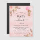 Para um chá de fraldas moderno estilo boho. Um plano de fundo metálico de gradiente cor-de-rosa-claro. Decorado com ouro rosa e flores cor-de-rosa, rosas, grama-pampas e ursinha-peluche segurando um balão rosa. Personalize e adicione um nome e detalhes da parte.
