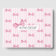 Este adorável livro de hóspedes de chá de fraldas tem um bebê vintage na frente com arcos cor-de-rosa bonito e um lugar para você adicionar o nome da mãe do bebê na área personalizada. Na parte traseira, há listras cor-de-rosa e branca com arcos e um lugar para adicionar a data do chá de fraldas. Esta é uma maneira fácil de organizar o chá de fraldas junto como uma bela manutenção para a "mãe ser".