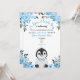 Fácil editável/personalizável, Convite Azul Bebê de tamanho duplo com um menino muito bonito, Baby PENGUIN. Todos os elementos são pinturas de cor aquosa azul-bebê, então é um convite muito bonito para chá de fraldas/aniversário/nascimento! Itens correspondentes estão disponíveis mediante solicitação!