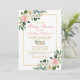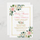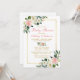 Cartão de Convite para Chá de fraldas Floral Branco e Dourado, cor-de-rosa-d-água - Texto rosa e Dourado