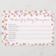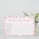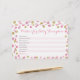 Nossa bolinhas cor-de-rosa e dourada chá de fraldas de brilho Desejos de Cartões-Bebês são uma atividade doce para se ter em um chá de fraldas. As cartas têm frases que os convidados podem preencher como "Espero que você sempre..." e "Espero que você aprenda a...". Você pode personalizar facilmente as cartas para usar o nome do bebê no título ou mudar as frases dos desejos antes de adicionar as cartas ao seu carrinho.