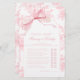 Jogo elegante e sofisticado de "Mamães ou pais", projetado para um chá de menina de temas coquetes. Apresentando um encantador arco cor-de-rosa desenhado à mão sobre o arco boêmico e o padrão floral cor-de-rosa no verso, este jogo clássico adiciona um toque de estilo de eterno e diversão ao seu evento. Perfeito para entreter hóspedes e criar memórias queridas, é uma adição ideal a uma celebração de chá de fraldas doce e pré-disquete.