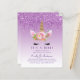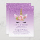 Bonito a rosa! Adorável rosa, roxo brilha unicórnio diante de um convite de chá de menina temida. Disponível em diversos tipos de cartão e papel e pode ser transferido para outros tipos de produto.