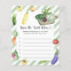"O bebê crescido localmente está a caminho". Celebrar com esta festa de chá de fraldas temático de legumes de aquarela! pepino aquoso, cebola, beringela, abobrinha, tomate amarelo e vermelho, rabanetes, cenouras, pimenta quente, pimenta amarela doce, ervilhas e repolho, brócolis e beterraba num conselho de corte. Colheita orgânica por aquarelas.