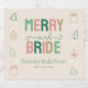 Feliz e noiva! Chá de noiva de Natal de inverno com árvores verdes, enfeites decorativos e caixas de presente contra um fundo bege neutro acentuado com flocos de neve brancos