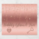 Desbloqueie o brilho com este rótulo de vinho espumante Rose Gold Confetti Bridal Shower, projetado para adicionar um toque personalizado e glamoroso à celebração do seu casamento. Com um gradiente de rosa para dourado, confetes cintilantes em cascata e um motivo de cadeado e chave com coração brilhante, este rótulo define o tom para um evento luxuoso. A frase Bubbly, Glam & Love adiciona um toque final divertido — ou personalize com o nome da noiva, uma mensagem ou a data do evento. Perfeito para garrafas de vinho espumante, champanhe ou prosecco, combina perfeitamente com guardanapos, sacolas de presente, placas e mais itens da coleção Rose Gold Confetti Bridal Shower.